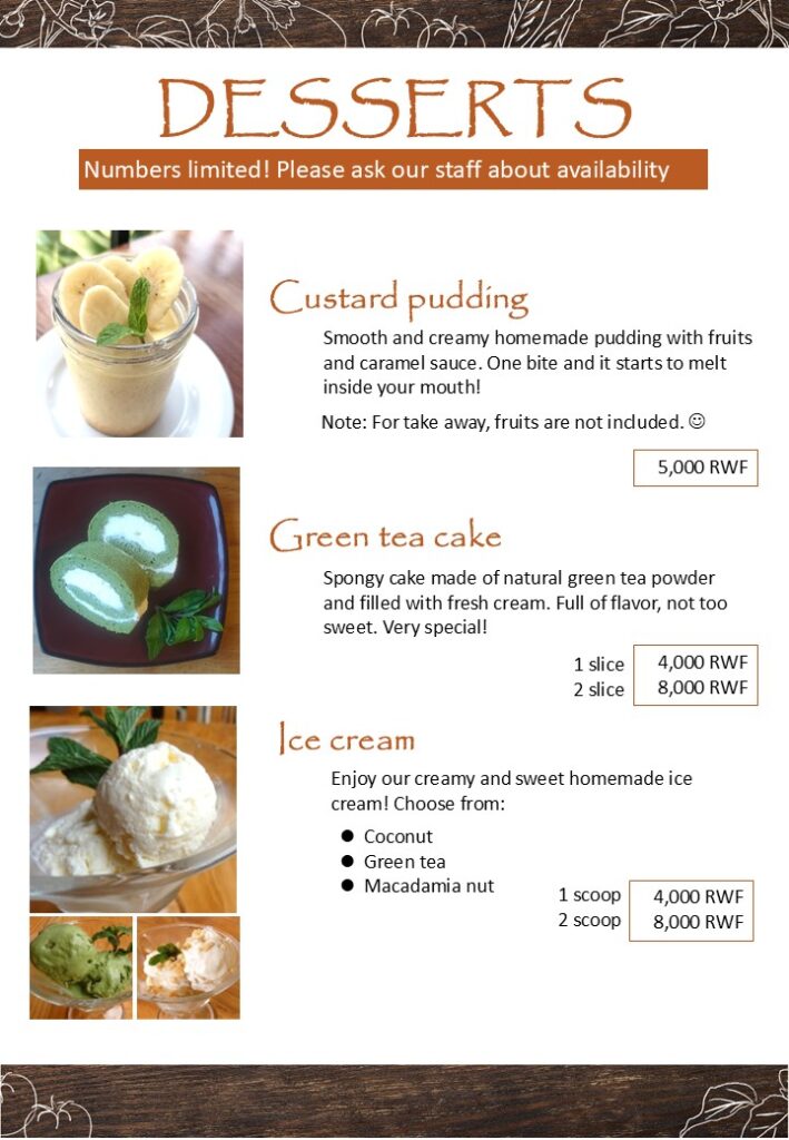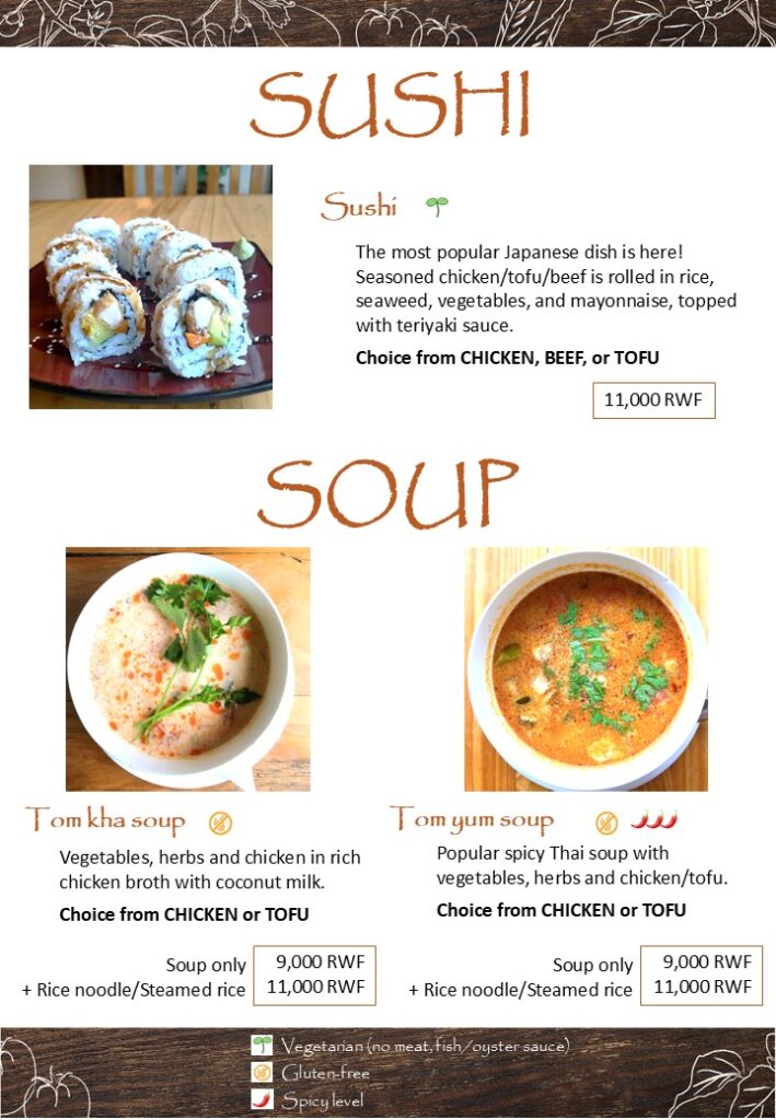 Open since 2015, Asian Kitchen was the first restaurant in Kigali to serve Thai dishes. Today, we offer even a wider variety of Asian dishes, and our best sellers include Pad Thai (fried rice noodles), Vietnamese pho (rice noodle in soup), and Japanese sushi rolls. We also provide a wide range of vegan, vegetarian, and gluten-free options for our customers.